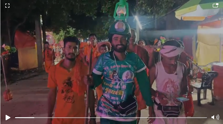 राजद समर्थक की अनोखी आस्था यात्रा: तेजस्वी को सीएम बनाने बाबाधाम पहुंचा माथे पर लालटेन रख हरे कपड़े में डाक बम”