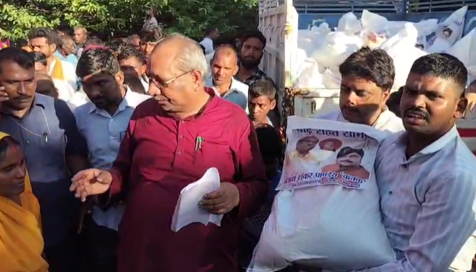 बलिया में बाढ़ राहत सामग्री पैकेट पर मोदी-योगी की तस्वीर गायब, मंत्री संजय निषाद की तस्वीरें लगीं